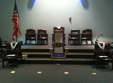 Brother Fred Wright sits in as Chaplain while Worshipful Kevin Gourley sits in as Secretary at a Stated Communication.