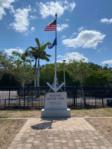 Worshipful Masters Aaron Averhart (Tropical Lodge) and John Herman (Fort Myers Beach Lodge) exchange "traveling" gavels.